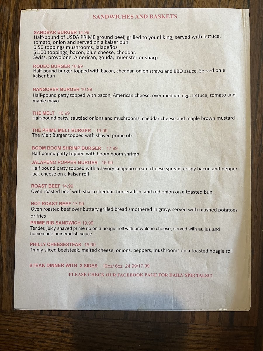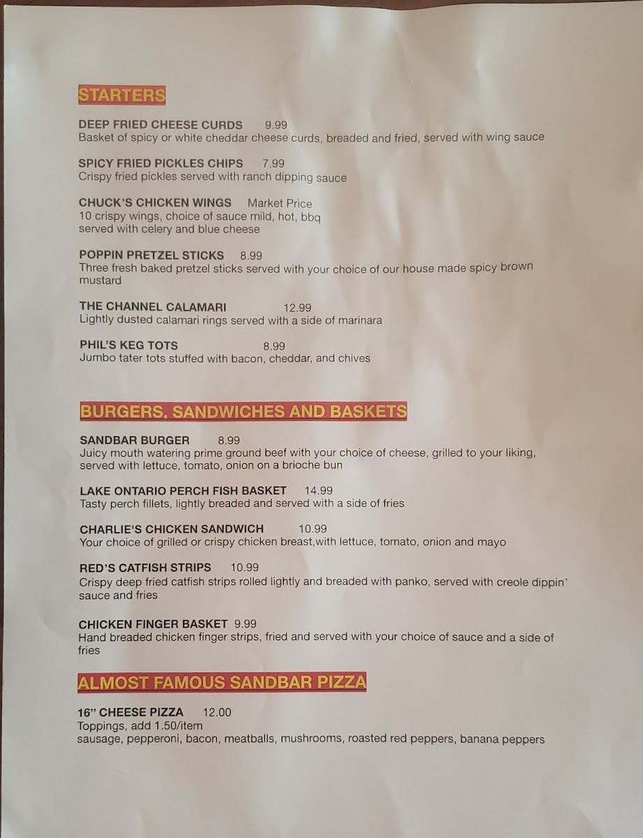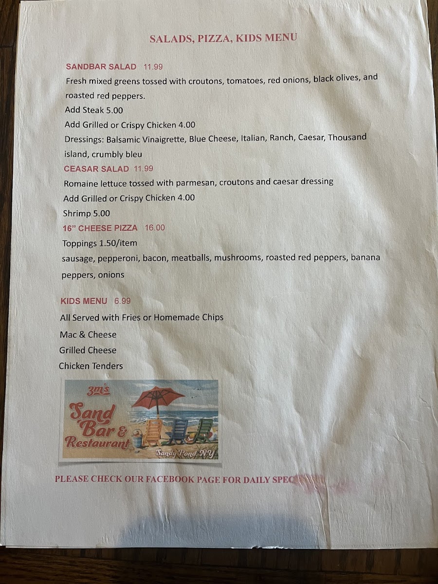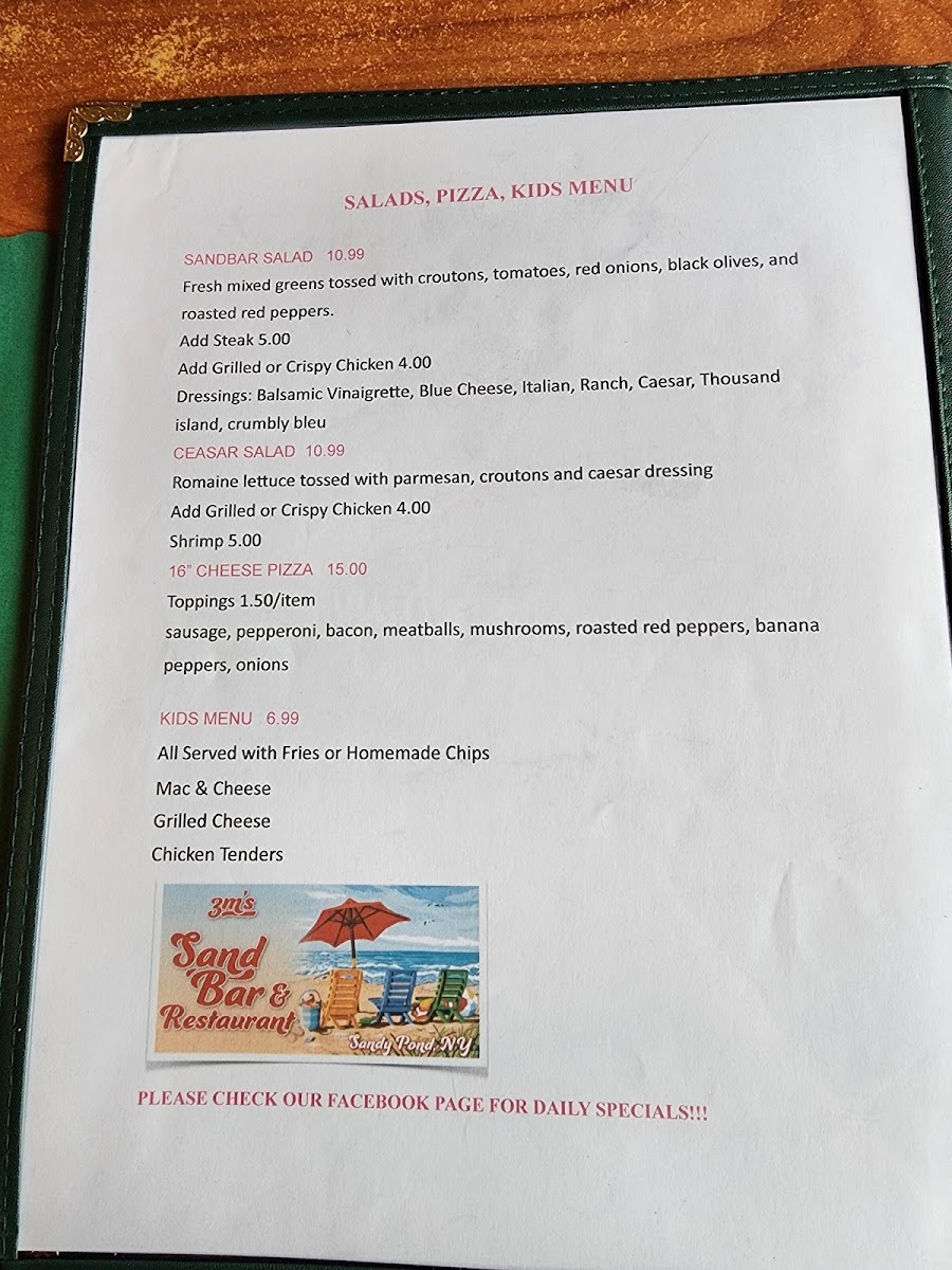3M's Sand Bar - Famous Pizza & Burgers Sandy Pond NY Menu (Update 2025)